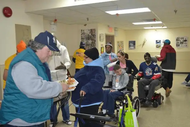 LSM volunteers distributing meals at Newark Penn Station during our Annual Thanksgiving Food Drive